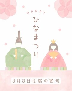 健康を願う行事で、ご家庭ではひな人形を出してお祝いをするのが日本家庭では